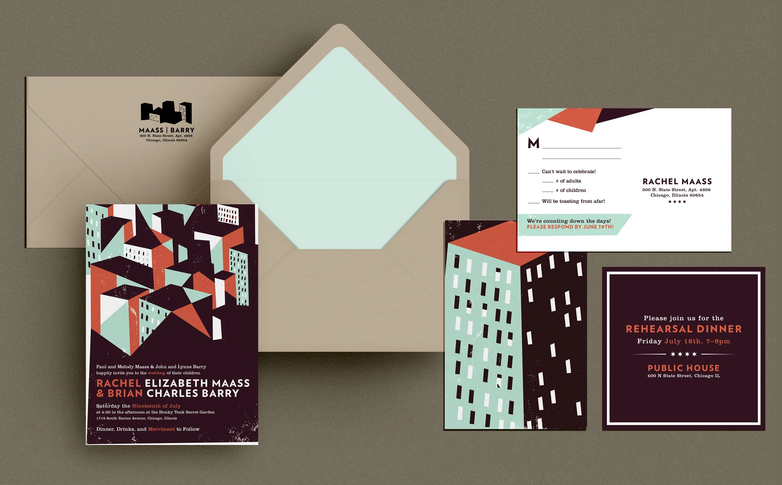 When the bride and groom have a vision for a laid-back big-city wedding with bbq in the vacant lot of an old church, we’re all in. We designed their stationery to help them convey this vision to their guests.