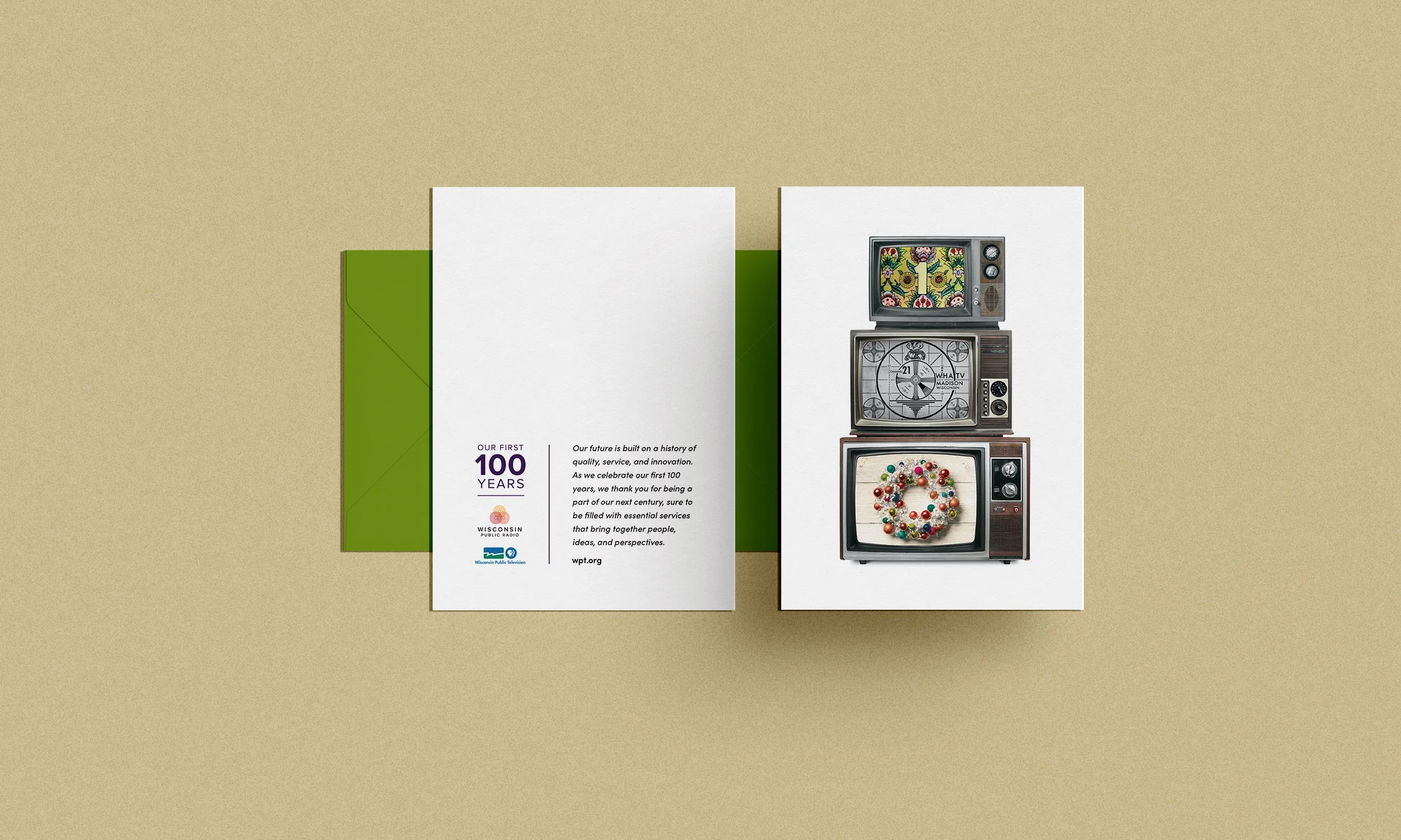 PBS Wisconsin is a great non-partisan resource for news and safe kids’ programming. We worked with them to design their stationery for their updated brand launch and several holiday cards.